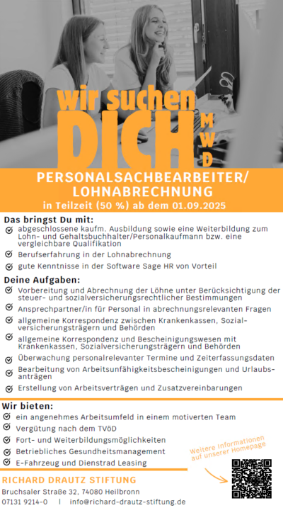 So starten Sie schnell und unkompliziert in Ihre Karriere bei der Richard-Drautz-Stiftung Heilbronn.