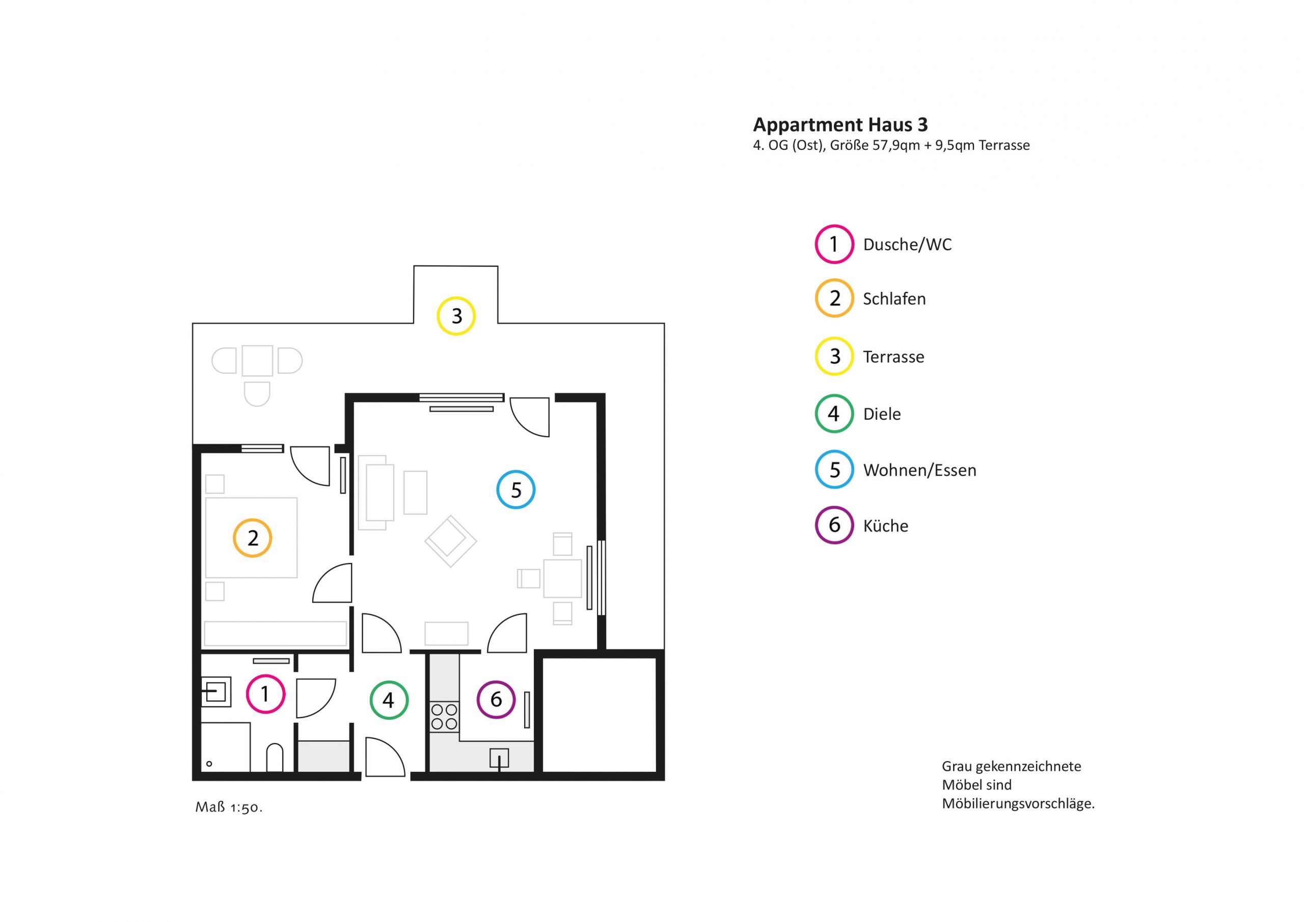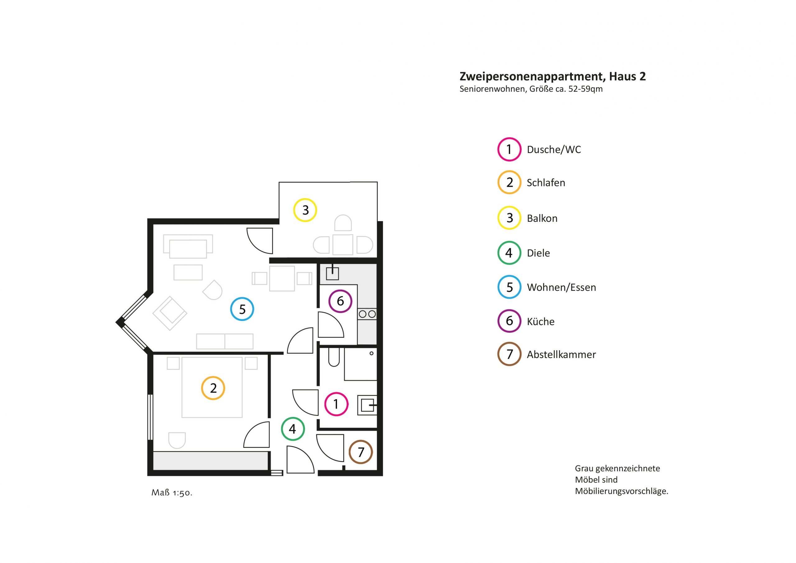 - Zweipersonenappartements ca. 52 – 59 qm