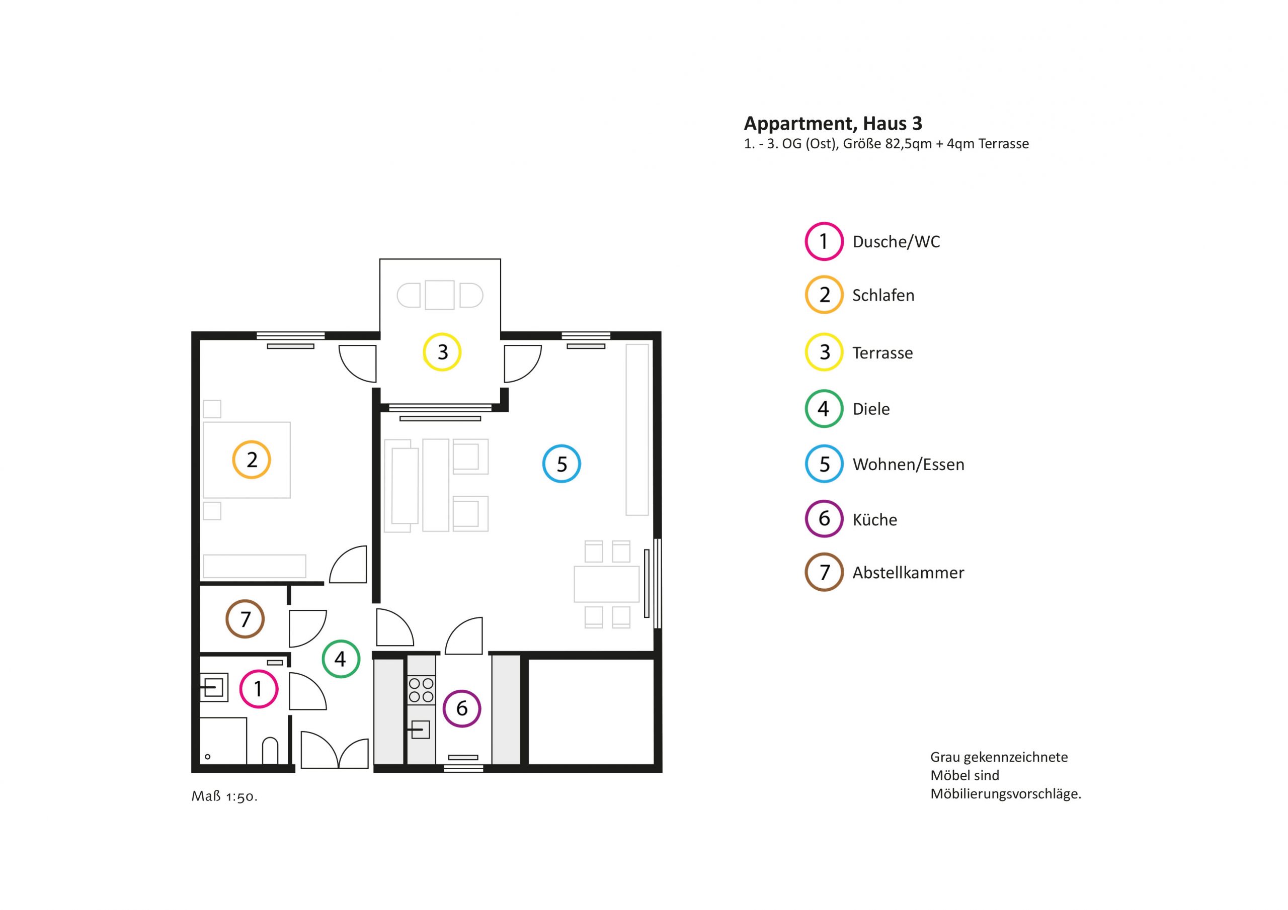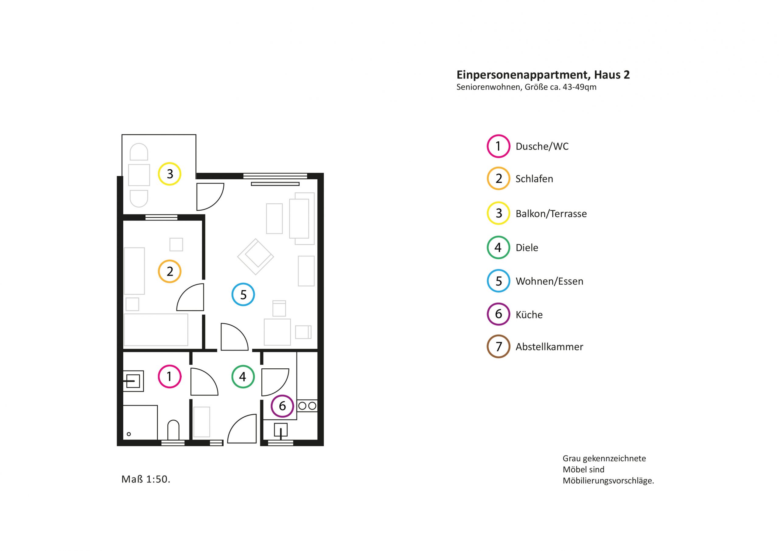 - Ein-Personenappartements ca. 43 – 49 qm